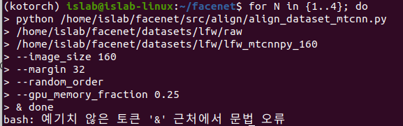 일단 저기에 나온 코드를 그대로 긁어서, ~/facenet의 위치에서 터미널창에 입력했다.
